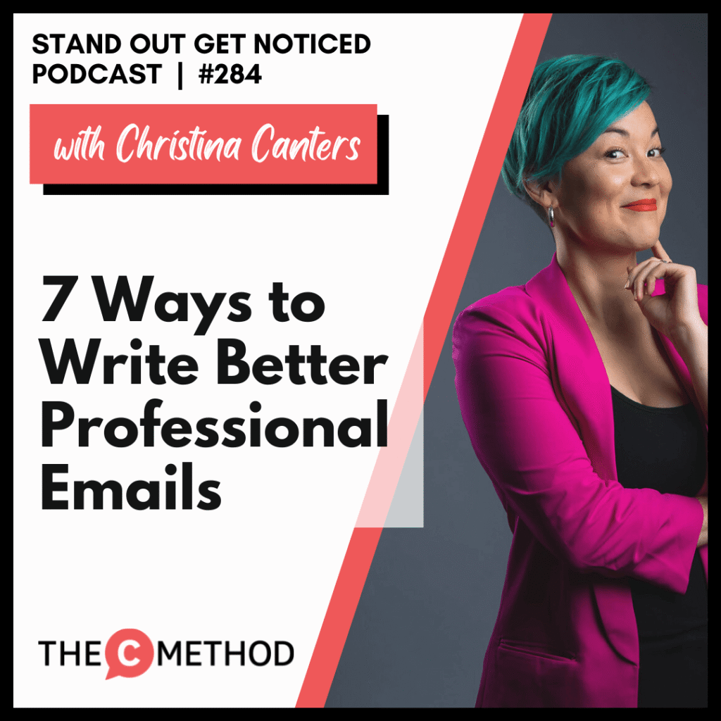 You probably spend a lot of time receiving and sending emails. But is your email communication as effective as it can be? In this episode, I share 7 ways to write better professional emails. These tips and techniques will help you to be more productive, and can make you come across as being more eloquent, more capable and more professional. Woo hoo! Show notes are at www.thecmethod.com/284. This has been Episode 284 of the Stand Out Get Noticed Podcast with Christina Canters.